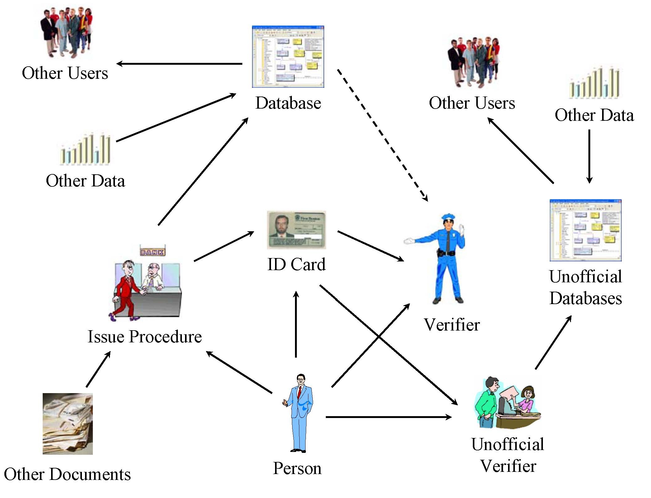 Enough of terrorism; what about more mundane concerns like identity theft? Perversely, a hard-to-forge ID card can actually increase the risk of identity theft. A single ubiquitous ID card will be trusted more and used in more applications. Therefore, someone who does manage to forge one—or get one issued in someone else’s name—can commit much more fraud with it. A centralized ID system is a far greater security risk than a decentralized one with various organizations issuing ID cards according to their own rules for their own purposes.